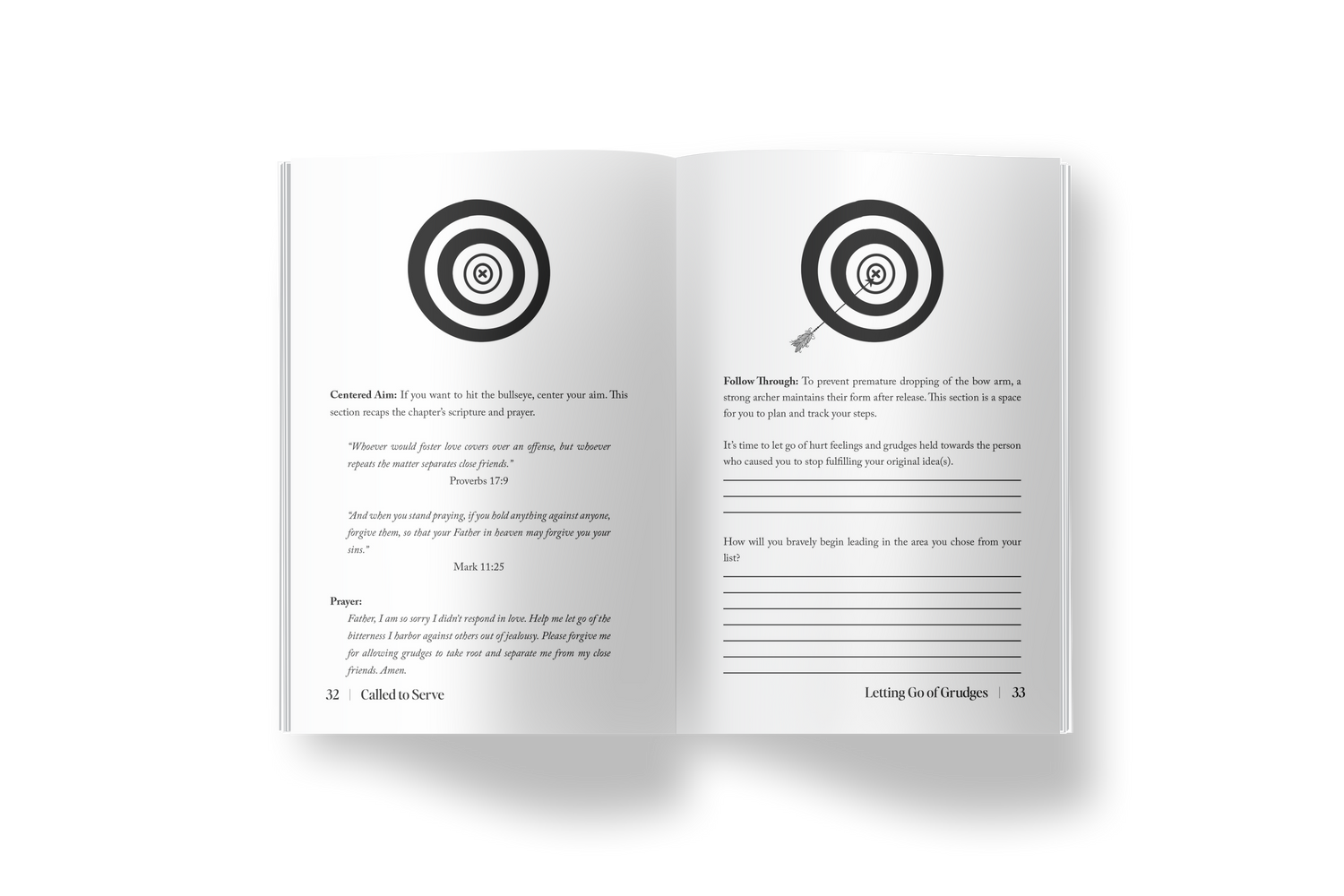 - Centered Aim: If you want to hit the bullseye, you must center your aim. This section recaps the chapter’s scripture and prayer.