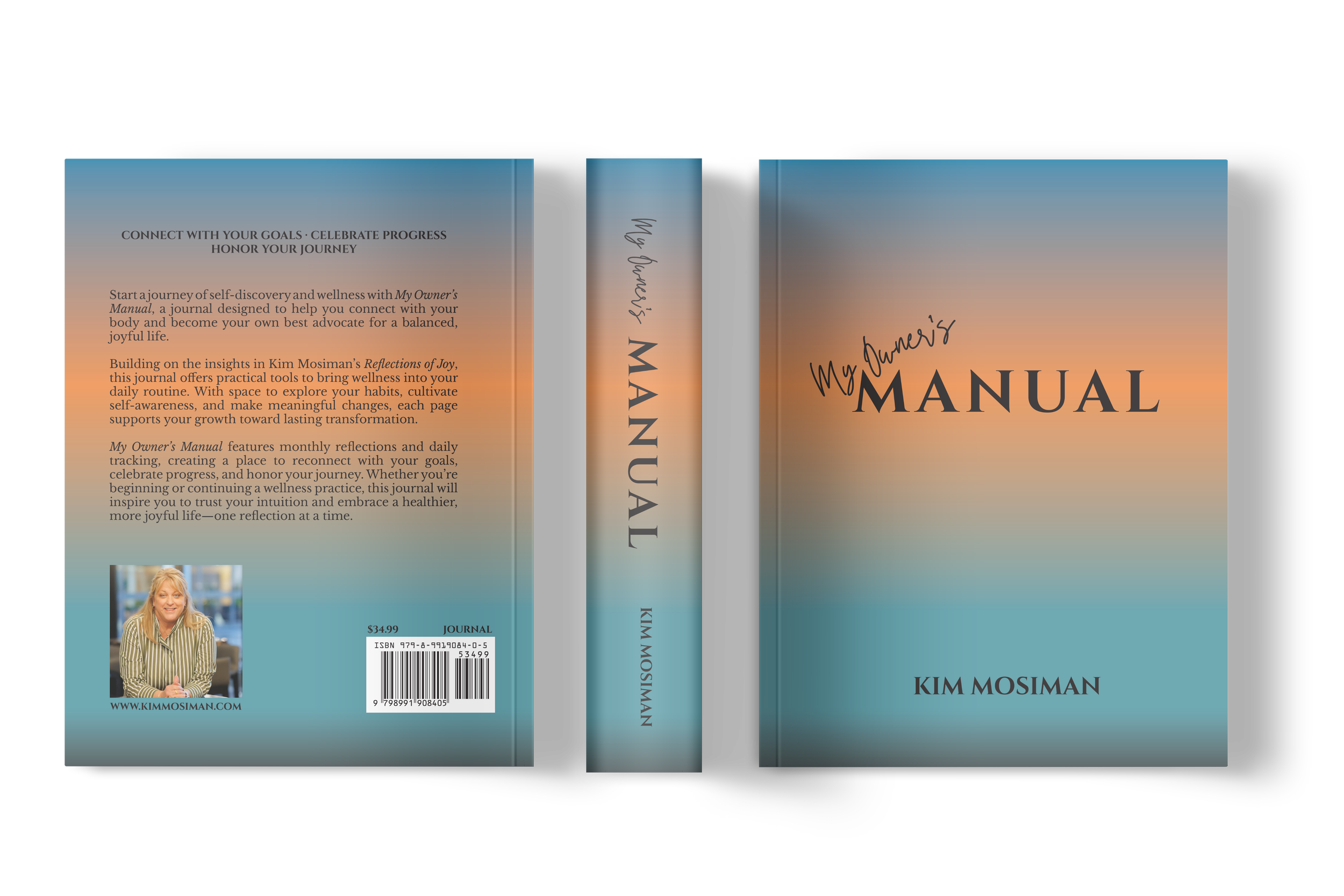 I collaborated with Kim on designing her journal, My Owner's Manual. The cover was made to match the color scheme of her published book. The interior has planning pages for daily and monthly logging.