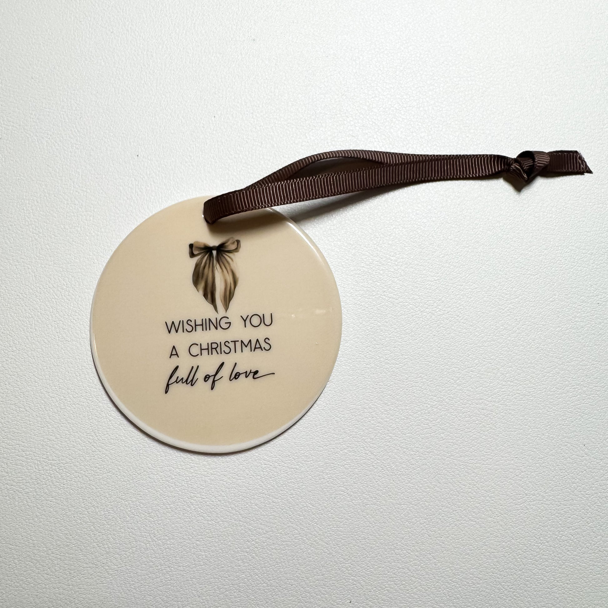 Note: Ribbon may vary due to availability and could be either solid brown or ivory.